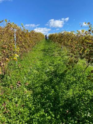 ぶどうの畝間にはライ麦を蒔き、根を伸ばすことで耕盤層を破壊し、